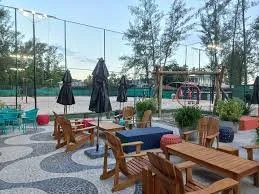 A quadra principal tem até arquibancada. Temos estrutura para sediar os principais campeonatos do circuito de Beach Tennis.